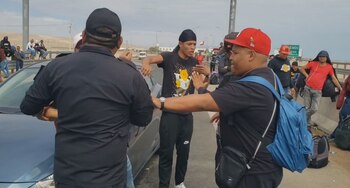 Fotos del enfrentamiento entre la policía peruana y migrantes extranjeros en la frontera de Perú y Chile