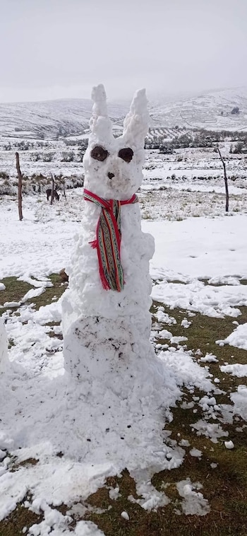 El fenómeno en Cusco denominado DANA ‘David’, que ha provocado que se presente nieve en esta localidad, la cual, ha sido bien recibida por un grupo de ciudadanos que han aprovechado este inusual comportamiento de la naturaleza para inspirarse y realizar muñecos de nieve.