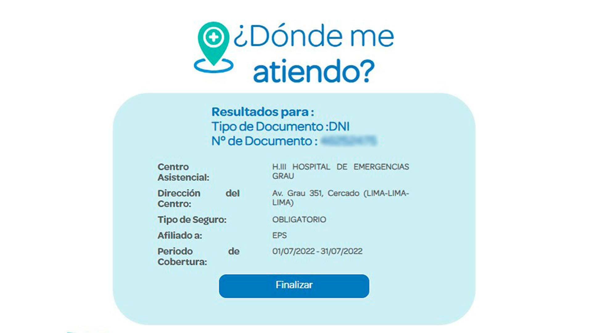 Es la manera más simple de averiguar tu centro asistencial (hospital donde debes atenderte), sin contraseñas ni registros, solo necesitas tu DNI.