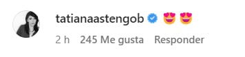 Por otro lado, actores con quienes también compartieron en la serie como Tatiana Astengo (Reina Pachas) y Erick Elera (Joel Gonzales) no dejaron pasar la oportunidad y dejaron sus comentarios. Ambos pusieron emojis de palmas y corazones con lo que evidencian que están muy contentos con este reencuentro.