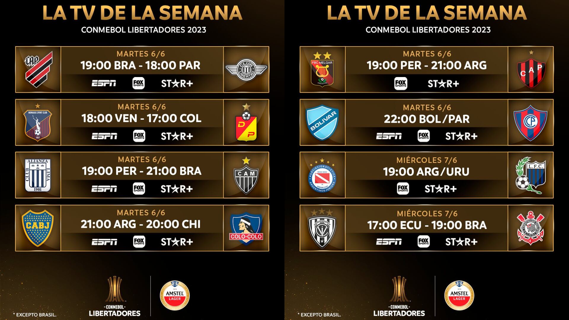 - Bolívar vs Cerro Porteño (21:00 horas / Star Plus, ESPN2)