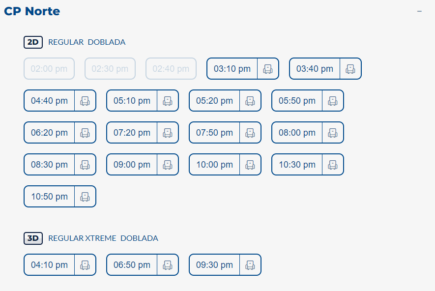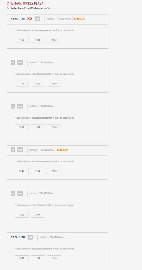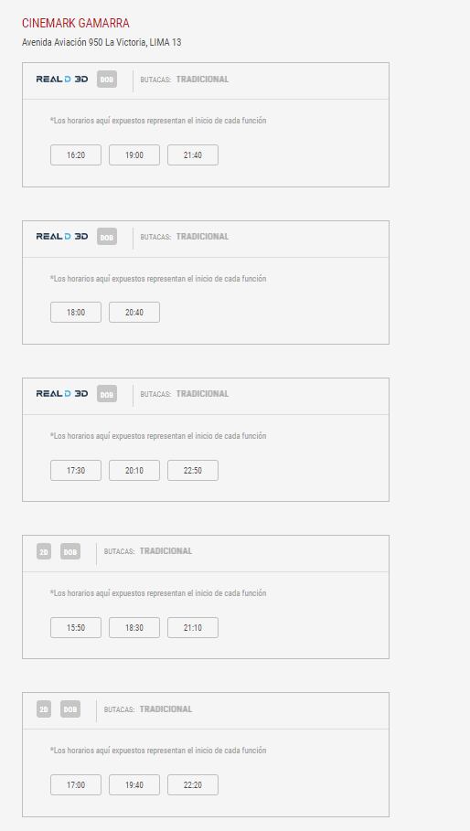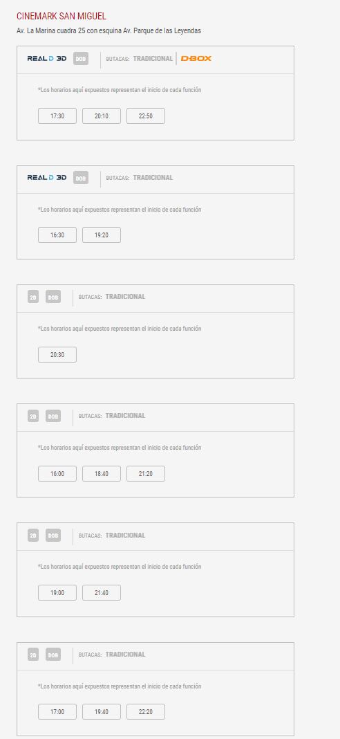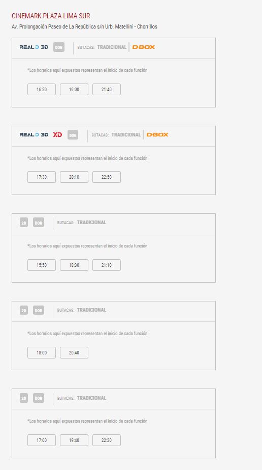 Cinépolis cuenta con 3 sedes en Lima. En cuanto a la entrada general, los adultos pagan S/33.50 y niños S/30.50 en Larcomar; S/22.50 y S/20 en Santa Anita; y S/21.50 y S/19 en Plaza Norte, respectivamente.