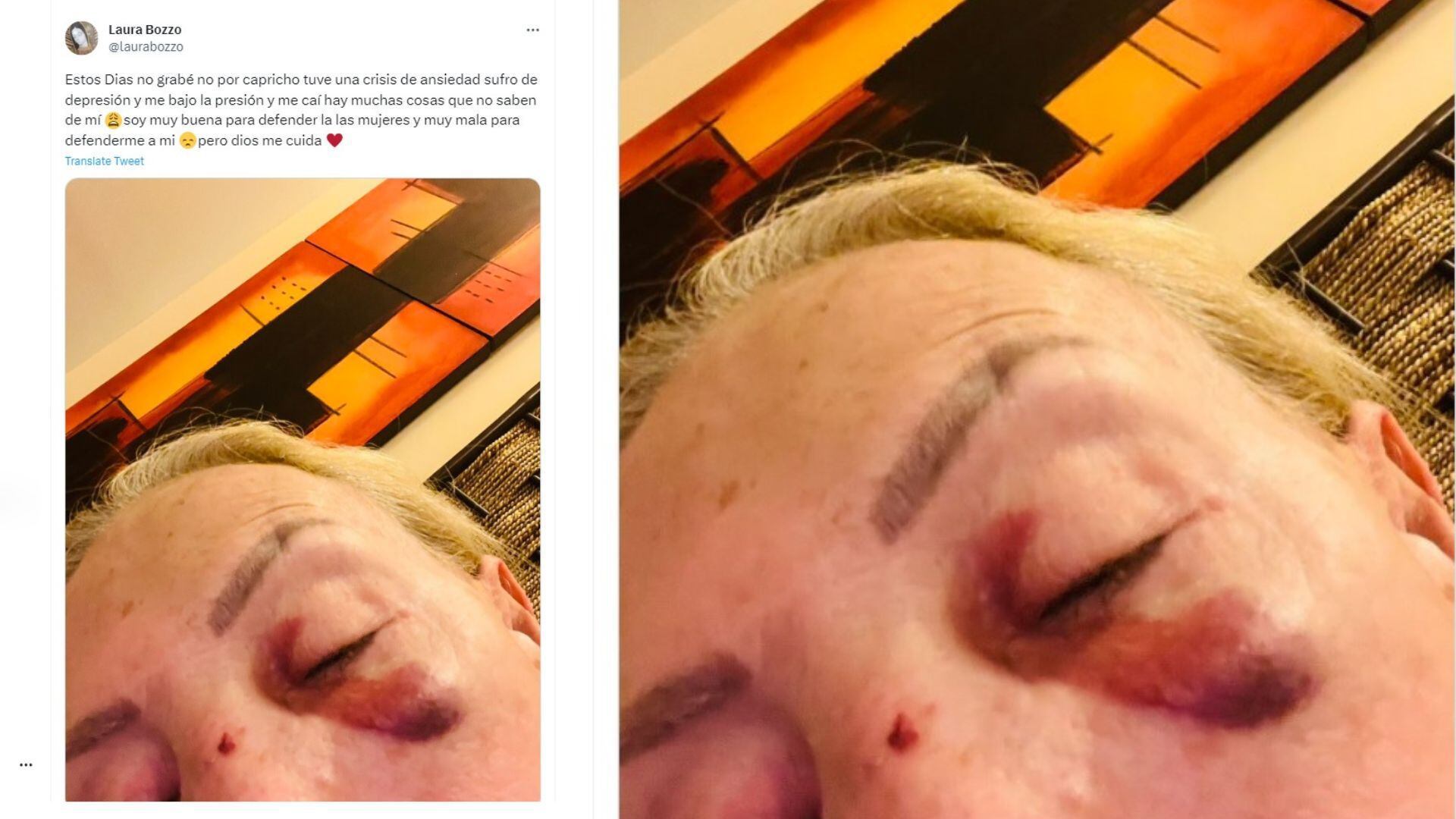 También hubo quiénes pusieron en duda sus declaraciones. Así lo hizo su seguidor llamado Carlos Alberto, quien le escribió: “Mentira universal: esos golpes en la cara son porque me caí. Srta. Laura debe de cuidarse mejor”. A lo que la abogada refutó: “No tengo por qué mentir vivo sola y sí me bajó la presión, me caí de rodillas y la cara contra el piso. Había tenido ataque de pánico y tomé las pastillas que me manda mi médico. Punto”.