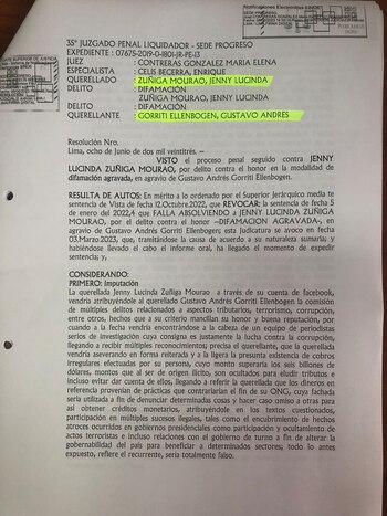 El Poder Judicial ha condenado a la comunicadora Jenny Zúñiga Mourao, integrante del grupo extremista ‘La Resistencia’, por el delito de difamación agravada en agravio del periodista de investigación Gustavo Gorriti, fundador de IDL-Reporteros.
