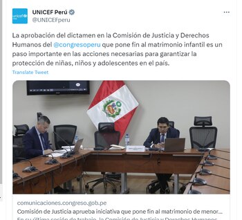 Nueve meses después de que la legisladora no agrupada Flor Pablo presentara un proyecto de ley para eliminar el matrimonio infantil, la Comisión de Justicia y Derechos Humanos del Congreso aprobó el último viernes el dictamen que pone fin a estas uniones con menores, una problemática que expone a las niñas a violencia doméstica y las empuja a la deserción escolar, según el Fondo de las Naciones Unidas para la Infancia (Unicef).