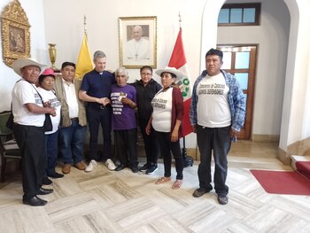 La Coordinadora Nacional de Derechos Humanos (CNDDHH) señaló que los representantes abordaron “la situación que atraviesan a raíz del despojo de sus tierras y la criminalización de que son víctimas por parte de empresas vinculadas” al grupo católico.