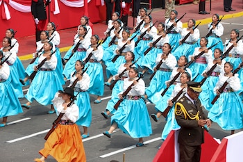 Miles de peruanos se congregaron este sábado para el gran desfile cívico-militar por motivo de las Fiestas Patrias, que conmemoran la independencia del país y que no se celebraba en las calles limeñas desde hace tres años por la pandemia.