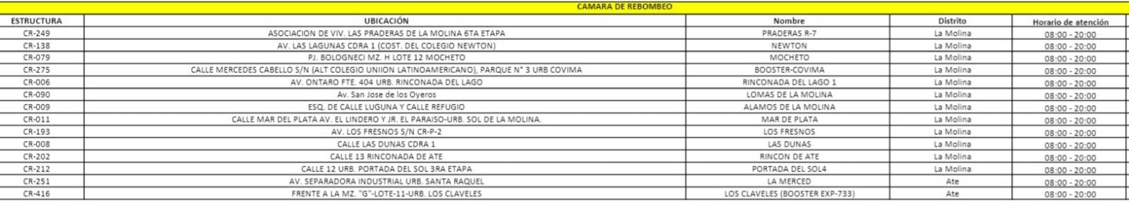 Sedapal también ha informado que se habilitarán puntos de distribución diaria de agua potable a través de camiones cisterna. Los centros de salud, instituciones penitenciarias y estaciones de bomberos serán abastecidos directamente con camiones cisterna para no afectar sus operaciones.