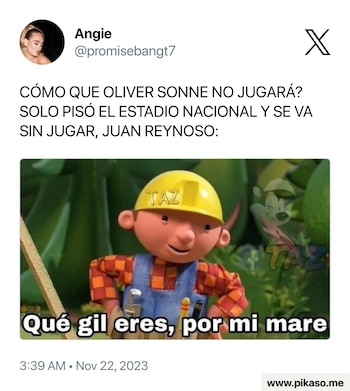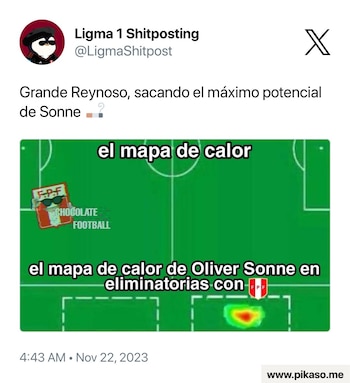 Las redes sociales se inundaron de memes en favor a Oliver Sonne, quien nuevamente no pudo debutar con Perú debido a una decisión de Juan Reynoso. Los usuarios reclamaron que solo haga venir al peruano-danés al Perú para llevarlo de paseo a otros países o prometer algo que no hará el DT de la selección peruana.