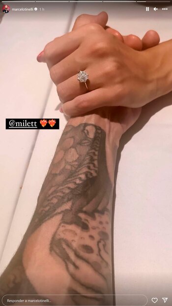 Este martes 6 de febrero, Marcelo Tinelli publicó una imagen de la actriz peruana, quien luce con orgullo un brillante anillo en su dedo anular. En la instantánea, el presentador de TV expresó su amor hacia la peruana etiquetándola y acompañando la publicación con emoticones de corazones.