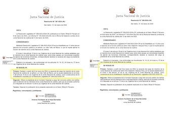 La Junta Nacional de Justicia (JNJ) declaró este jueves la vacancia de los magistrados Inés Tello y Aldo Vásquez, quienes fueron cesados por el Congreso la semana pasada tras una polémica votación en la que algunos legisladores cambiaron sus votos. Las resoluciones por separado llevan la firma de Antonio de la Haza, presidente del máximo órgano de la Judicatura, y disponen oficiar a la Comisión Especial para que asuman sus suplentes.