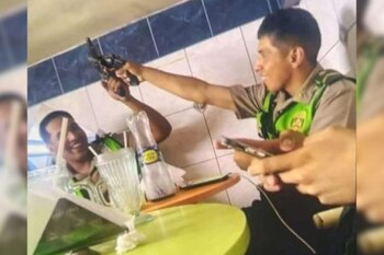 Un nuevo escándalo golpea a la Policía Nacional del Perú (PNP) tras la viralización de una fotografía que muestra a dos agentes manipulando de manera irresponsable sus armas de reglamento en un restaurante de Lobitos, en Talara, Piura. Según testigos, los policías estaban simulando jugar a la ruleta rusa, lo que ha generado una fuerte indignación entre los presentes y la comunidad en general. Este hecho, ocurrido en la segunda semana de diciembre, ha desatado críticas y pedidos de sanciones. Hasta el momento, los agentes involucrados aún no han sido identificados, aumentando la preocupación por parte de los vecinos.