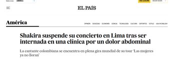 “Shakira anuncia hospitalización tras ser atendida de urgencia y pospone concierto en Perú”, “Shakira cancela concierto en Perú tras ser hospitalizada: ‘Estoy muy triste de no poder subir al escenario hoy’”, titulaban algunos periódicos internacionales, mientras que otros comentaban sobre el “gran pesar” que dejó la noticia en la ciudad peruana.