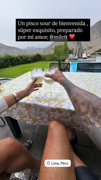 Mediante su cuenta de Instagram, se lució en una casa aparentemente de campo, con piscina y una gran parte al aire libre, muy parecida a su casa de Punta del Este, pues es amante del sol. En un inicio, se mostró él solo con una selfie etiquetando el lugar donde estaba que era Lima, más adelante mostró su mate que lo acompaña al país donde vaya.
