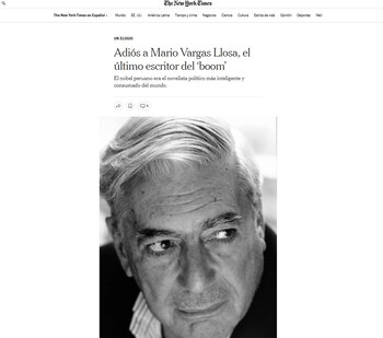 En un obituario titulado “Adiós a Mario Vargas Llosa, el último escritor del ‘boom’”, The New York Times destacó la trayectoria y pluma literaria del Nobel peruano: “Vargas Llosa había contribuido a poner en marcha, a principios de la década de 1960, un movimiento que se conoció como el boom, término aplicado a una nueva generación de escritores latinoamericanos de espíritu libre y conciencia social, entre ellos García Márquez, Carlos Fuentes, Julio Cortázar, Juan Rulfo, Guillermo Cabrera Infante, José Donoso y Miguel Ángel Asturias. Vargas Llosa era el último escritor vivo del boom, lo que de alguna manera duplica el impacto de su pérdida. Era el novelista político más inteligente y consumado del mundo.”
