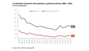 Entre 2023 y 2024, la tasa de pobreza en La Libertad se redujo de 31.6% a 30.2%, por lo que 27 mil liberteños salieron de esta situación. Sin embargo, la pobreza en la región se mantiene por encima del promedio nacional (27.6%) y lejos de su nivel de 2019 (24.7%). Así, se estima que aún hay 142 mil liberteños más en situación de pobreza a partir de la pandemia.