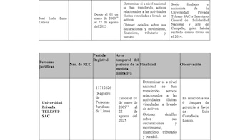 La orden judicial no solo involucra a José Luna Gálvez, sino también a familiares directos y colaboradores de Castañeda Lossio, así como a la propia Universidad Privada Telesup S.A.C. El levantamiento del secreto bancario incluye: