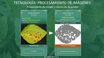 La App permite sacar fotografías de los cultivos (soja, maíz, trigo) y obtener un feedback instantáneo de qué tipo de enfermedades y cuál es su grado de severidad. De esta manera, realiza un diagnóstico y luego, mediante un algoritmo, recomienda los productos a utilizar. También desarrollamos una solución para plagas y malezas, ya que apuntamos a incrementar el rendimiento del productor mediante la reducción de pérdidas en el cultivo que puede llegar al 30% de la producción.