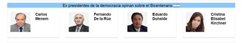 Eduardo Duhalde, Fernando de la Rúa y Carlos Menem aceptaron la propuesta de pensar los 200 años del país y los desafíos que quedan para el porvenir. Cristina Kirchner fue invitada a participar, pero prefirió no hacerlo.