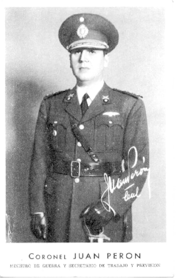 En noviembre de 1943, se desempeñó como secretario del ministro de Guerra. Su superior inmediato, el general Edelmiro J. Farrell, consignó en el legajo personal de Perón lo siguiente: "Sobresaliente coronel, me merece el más alto concepto por sus condiciones intelectuales, morales, sus conocimientos militares y generales, su cultura y caballerosidad. Trabajador eficientísimo y abnegado, colaborador, de gran mérito".