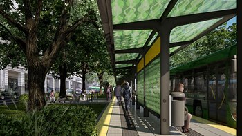 Otro de los grandes beneficios de la obra fue que en esta oportunidad los 25 paradores del Metrobus del Bajo fueron diseñados con la consigna de generar un corredor verde a lo largo de toda la traza. Esto se traduce en una disposición que respeta el arbolado preexistente en la zona y además suma vegetación, césped y follaje al recorrido.