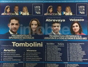 En capital, "1 País Mejor" lleva como primer candidato a diputado nacional al economista Matías Tombolini y como legislador a Sergio Abrevaya y ya presentó en la Justicia electoral la nueva boleta sin las fotos.