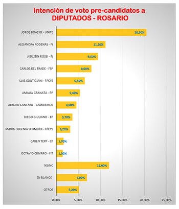 Ahora, ese liderazgo está en riesgo, ya que en la última encuesta realizada por el Observatorio Argentino para los precandidatos en Rosario, el radical Jorge Boasso, que compite bajo el sello Unite por la Libertad y la Dignidad y responde a Cambiemos a nivel nacional, lidera los sondeos con el 20,5%.