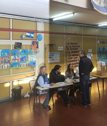 La Escuela Nº 16 Wenceslao Posse volvió a recibir a Mauricio Macri en una elección: el jefe de Estado llegó con algo de demora (se lo esperaba a las 11 y lo hizo casi media horas después) al colegio ubicado en el barrio de Palermo; como de costumbre, les llevó facturas a los responsables de la mesa 6584 en la que le tocó sufragar.
