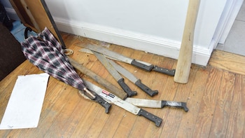 Un tercer procedimiento se realizó esta tarde en el edificio de la Uocra de La Plata -el mismo en el que Medina estuvo "atrincherado"-, donde autoridades de la intervención se retiraron con custodia de Policía Federal, se secuestraron varios escudos de plásticos y chapa, cinco varillas de hierro, una máscara anti-gas y siete machetes.