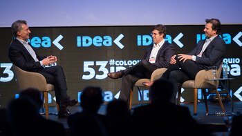 El Presidente estaba de buen humor y chanceó con el público antes de iniciar su exposición. "Veo que se quedaron hasta el final", dijo mirando a su audiencia de más de 900 asistentes, más de la mitad empresarios. Cerca de allí estaba su esposa Juliana Awada y un compacto grupo de ministros y secretarios de Estado. Un poco más lejos, en un discreto segundo plano, se desplegaba un anillo de custodios presidenciales que observaban con atención lo que sucedía alrededor.