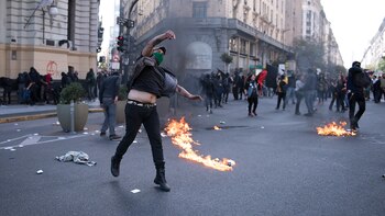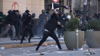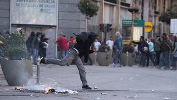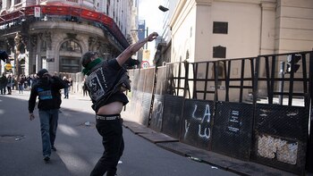 De acuerdo a las imágenes, militantes del Partido Socialista de los Trabajadores (PTS) se ubicaron frente a la valla que rodea a la Catedral para evitar que los manifestantes arrojaran objetos e intentaran trepar el vallado.