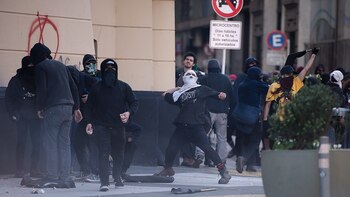Una reducida banda vestida de ropa oscura y con los rostros cubiertos ingresó a la Plaza de Mayo y comenzó a atacar los edificios públicos, cuando el acto terminaba y miles de personas y agrupaciones comenzaran a desconcentrarse de forma pacífica.