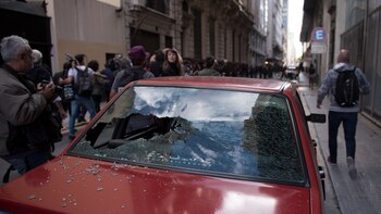 Luego, varios de ellos fueron registrados por las cámaras rompiendo vidrieras en los alrededores y los automóviles que estaban estacionados.