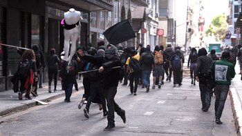 Un grupo pequeño de encapuchados protagonizó destrozos, agresiones y escenas de vandalismo en el microcentro porteño en la tarde del sábado, cuando desconcentraba la multitudinaria movilización hacia Plaza de Mayo en reclamo de juicio y castigo a los responsables de la muerte de Santiago Maldonado.