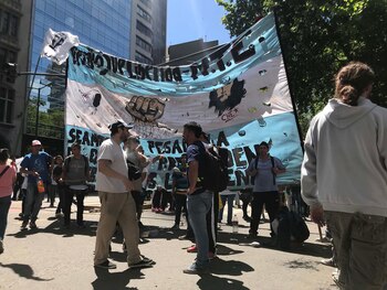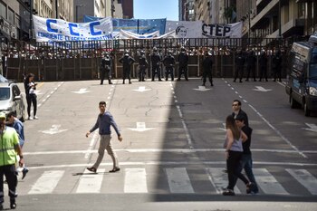La marcha originó un caos en el centro porteño, con las columnas de manifestantes que se dirigieron al CCK por la calle Corrientes, que estuvieron encabezadas por la agrupación Barrios de Pie, cuyos referentes reclamaban que los convoquen a participar del anuncio de las reformas.