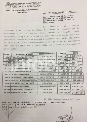 El juez integra un listado de 13 magistrados que perciben este salario vitalicio, confeccionado por el Ministerio de Hacienda a pedido de la titular de la presidenta del Consejo de la Magistratura, Adriana Donato, y al que accedió Infobae.