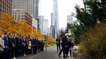 Di Blasio está en campaña electoral –mañana se juega la relección–, y decidió participar de la ceremonia en homenaje a los cinco rosarinos asesinados en la bicisenda que pasa muy cerca de la Torre de la Libertad, un construcción moderna que toca el cielo con su antena y sucede a las Torres Gemelas, demolidas en el ataque terrorista de Al Qaeda en septiembre de 2001.