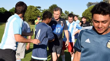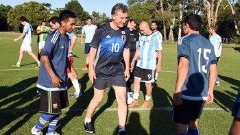 Mauricio Macri dejó atrás sus problemas en la rodilla y jugó al fútbol con los trabajadores que están realizando las tareas de remodelación de la quinta presidencial de Olivos.