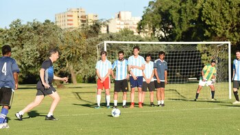 El mandatario jugó en un equipo formado por los obreros, que enfrentó a otro compuesto por funcionarios y colaboradores del Gobierno. Macri utilizó una camiseta azul de la selección de Japón, con el número 10.