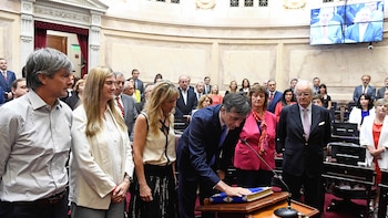 Los 23 senadores electos (de un total de 24) en las elecciones del 22 de octubre, entre ellos los ex presidentes Cristina Kirchner, Carlos Menem y Adolfo Rodríguez Saá, juraron este miércoles en una sesión especial de la Cámara alta. La gran ausente de la jornada fue la legisladora bonaerense electa por Cambiemos, Gladys González, quien se encuentra en un viaje de trabajo en la República Popular China.