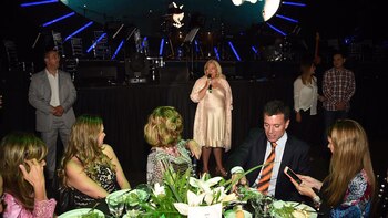 El pabellón 6 de Costa Salguero desborda de invitados y la anfitriona de la fiesta necesita hacer una pausa.