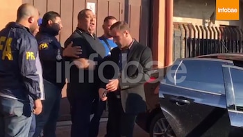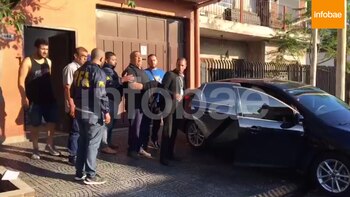 Faltaban 15 minutos para las 7 de la mañana cuando una decena de agentes policiales se presentó en el domicilio de Luis D'Elía en Isidro Casanova; golpearon la puerta varias veces hasta que salió uno de los hijos del dueño y detrás se lo pudo ver –con cara de dormido– al dirigente social.