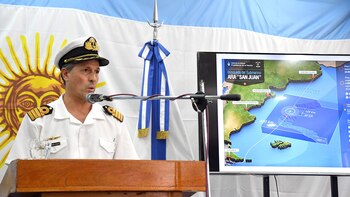 Ayer, en su habitual parte diario, el vocero de la Armada, Enrique Balbi, afirmó que el buque estadounidense Atlantis investiga "un nuevo contacto" detectado en la zona de rastrillaje. El funcionario militar, además, presentó a un experto en Hidrografía del Ministerio de Defensa que explicó que la zona explorada presenta "siete cañadones submarinos grandes", topografía que hasta ahora dificultó la búsqueda.