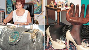 Pero además, López Vergara tiene "un teléfono hecho en un stiletto colorado de lentejuelas y una colección de lapiceras Mont Blanc de la línea Divas traídas directamente de Europa cuyo precio no baja de los 600 euros cada una. No falta por supuesto la cafetera italiana y una silla ergonómica para la columna".
