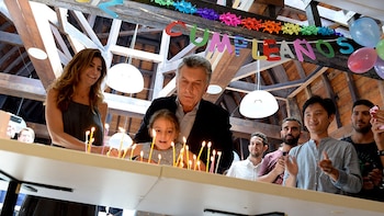 El presidente Mauricio Macri celebró esta tarde su cumpleaños número 59 en el comedor de la Casa Rosada junto a los empleados del edificio, su esposa Juliana Awada, y su hija menor, Antonia.