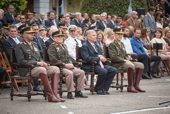Entre Suñer y Aguad tomó asiento el jefe del Estado Mayor Conjunto Bari del Valle Sosa quien en el nuevo esquema de las Fuerzas Armadas concentraría los suministros de todas. A la izquierda de Aguad se ubicó Pasqualini, quien en un brevísimo discurso solo agradeció al presidente Macri y al ministro "la confianza que han depositado en mí". En el macrismo lo recuerdan con respeto y afecto desde los tiempos en que el ahora jefe del Ejército comandó el Regimiento 1 de Patricios.