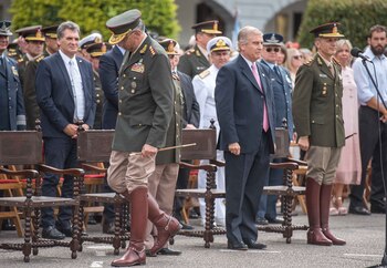 Además el ministro pareció apoyarse en el nuevo jefe: "Necesitamos un nuevo compromiso, nuevo entusiasmo, que impulse cambios con prudencia pero sin temores y sin prejuicios". Habló también de "aprovechar los fondos disponibles" y del "formidable esfuerzo" que se está haciendo en el país tras "una economía desquiciada que nuestras Fuerzas Armadas padecieron".