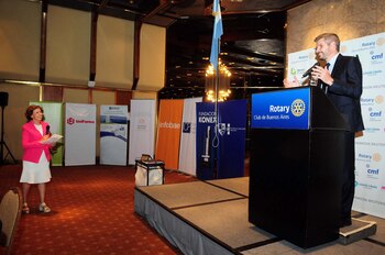 Lo escuchaban socios del Rotary Club de Buenos Aires, cinco embajadores que ahora son socios honorarios, presidentes de bancos, funcionarios de la Ciudad y la Nación, y empresarios entre los que estuvo José Urtubey de la Unión Industrial Argentina.