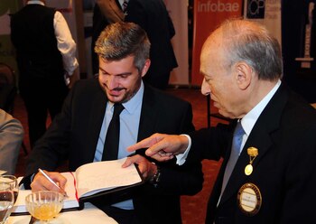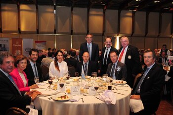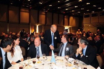 En la mesa cabecera (que esta vez fue una mesa redonda y no una mesa rectangular y larga como durante todo el año pasado) Peña estuvo acompañado por el presidente del Rotary, Luis Ovsejevich, y por su propio padre, Félix Peña, además de ex presidentes de los rotarios y de Adelmo Gabbi, presidente de la Bolsa de Comercio, entre otros.