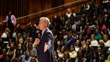 Macri sorprendió a muchas de las mujeres, que creían que el Presidente no asistiría. Antes, pidió que se pasara un video donde aparecen muchas de las mujeres del Gobierno, que el ministro de Modernización Andrés Ibarra dice que llegan al 40%, aunque Infobae calculó que en los cargos jerárquicos solo alcanza a 18%.